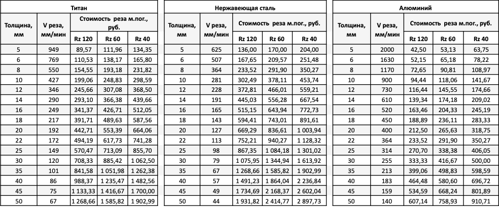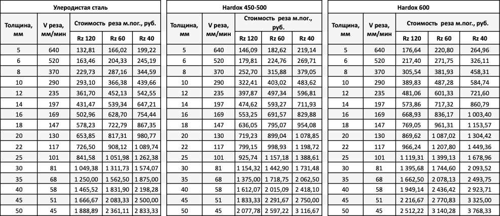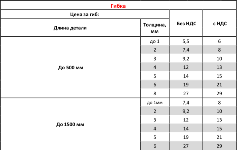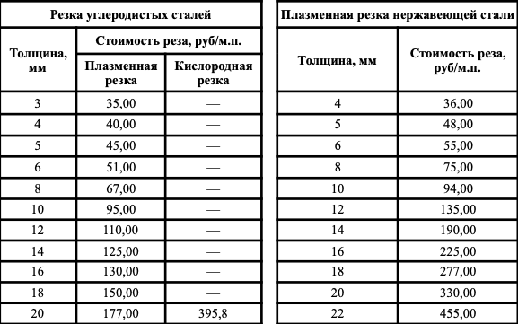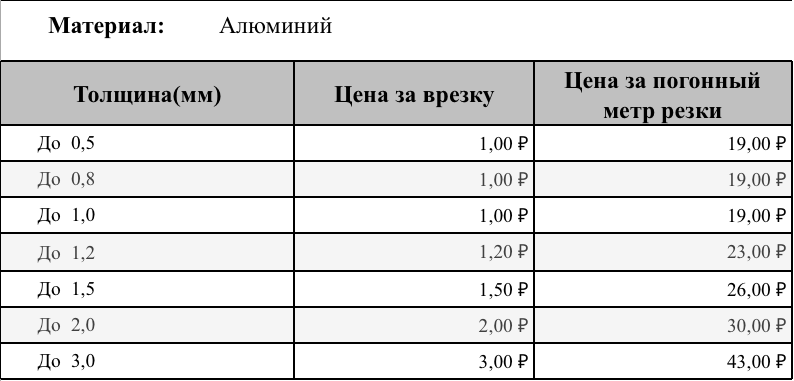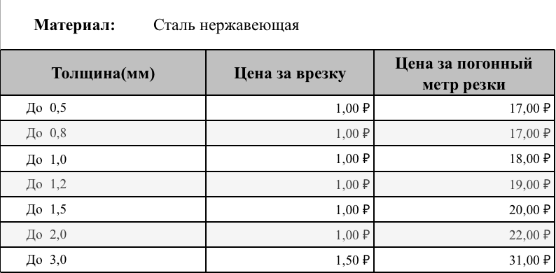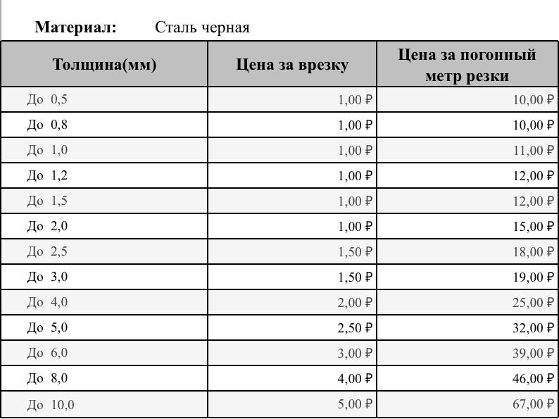 Цена врезки = толщина металла*0,5 для стали (или *0,8 для остального металла). Мини- мальная цена врезки 0,7 руб.